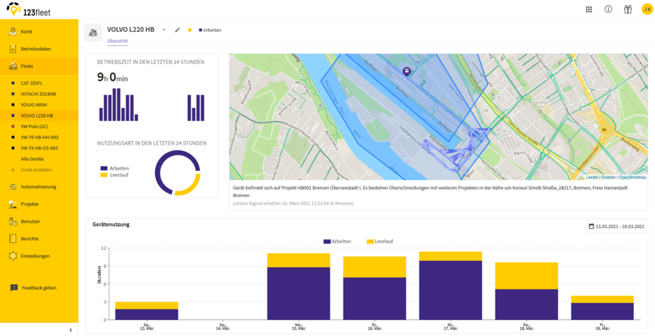 Die Meliorations-, Straßen und Tiefbau GmbH (MST) aus Laucha im südlichen Sachsen-Anhalt erwarb 100 Lizenzen der Lösung 123fleet des Softwarehauses 123erfasst aus Lohne. Bis Ende 2022 plant das Unternehmen über 300 Geräte an das hersteller- und ortungsportalunabhängige System anzubinden. Mit 123fleet, dass die gesamte Flotte in einer intuitiven Kartenansicht darstellt, automatisiert das Bauunternehmen effizient die Baustellenzuordnung und Leistungserfassung seiner Geräte. Das System ermittelt anhand der Leistungs- und Ortungsdaten und der hinterlegten Projekte automatisch die Gerätestunden und verbucht diese auf die entsprechenden Baustellen.