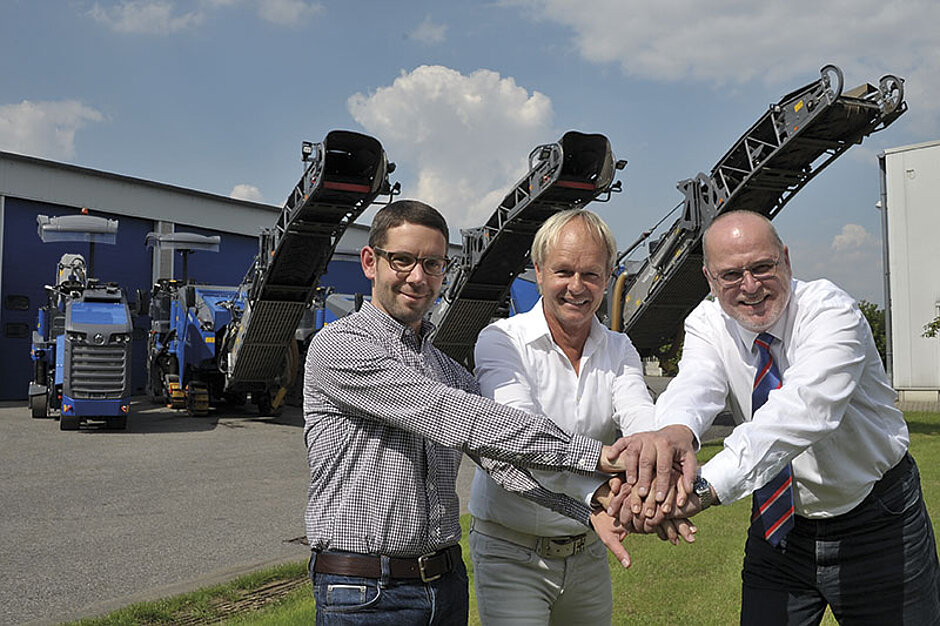 Zur Maschinenübergabe kam auch Klaus von der Gathen, Geschäftsführer Wirtgen Windhagen, nach Langerwehe. Nach dem Rundgang durch die Hallen, die Werkstatt und die Büros war er tief beeindruckt: »Bei der Borkowski GmbH treffen Perfektion und Präzision auf ein Höchstmaß an Ordnung.«