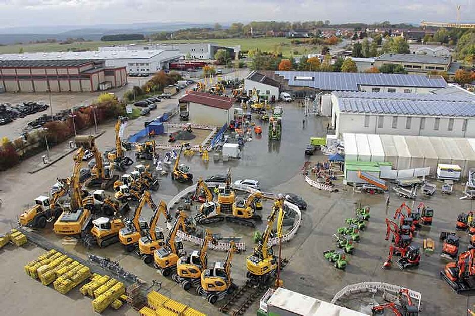 Die B.i.V. ist heute ein Spezialist für Baumaschinen, Baugeräte, Mietpark, Service und Ersatzteile sowie Hochbaukrane. Mit 150 Mitarbeitern an zehn Standorten in Nordbayern, Sachsen und Thüringen erwirtschaftet das Unternehmen einen Jahresumsatz von rund 40 Mio. Euro. Auf dem rund 20 000 m² großen Betriebsgelände zeigten während der Hausmesse mehr als 30 renommierte Aussteller Maschinen und Geräte der neuesten Generation, darunter langjährige Partner des Bayreuther Unternehmens wie Liebherr, Kubota, Ammann und Avant Tecno – fachmännische Beratung aus erster Hand durch Profis inklusive. »Als innovatives Unternehmen wollen wir technische Entwicklungen schnellstmöglich auf die Baustellen unserer Kunden bringen, deshalb haben wir dem Fachpublikum an einer Live-Baustelle Antworten auf die Frage nach dem Tiefbau der Zukunft aufgezeigt«, so Geschäftsführer Christian Steinlein. Der Sohn des Firmengründers nennt hier beispielsweise vollautomatische Schnellwechselsysteme, innovative Anbaugeräte, Methoden zur Bodenstabilisierung und Bodenverbesserung sowie Bodenverdichtung. »Grau ist alle Theorie, deshalb konnten Profis die neuesten Kettenbagger, Planierraupen, Walzenzüge und knickgelenkte Muldenkipper direkt testen.«
