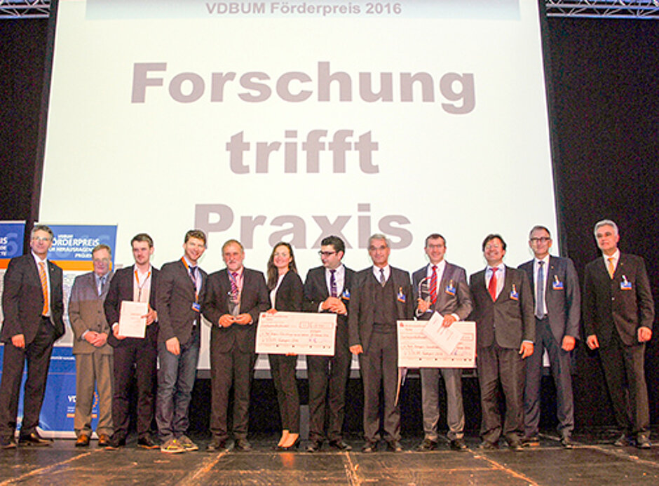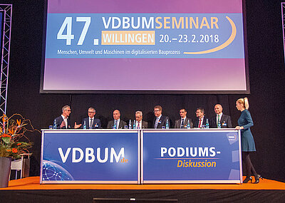 Neben zahlreichen Vorträgen und diversen Workshops sowie einer Rede des früheren Bundeswirtschaftsministers Wolfgang Clement stand die Verleihung des VDBUM-Förderpreises in drei Kategorien mit im Mittelpunkt der Veranstaltung, auf der VDBUM-Vorsitzender Peter Guttenberger (Foto 2. v. re.) unter anderem dafür warb, das Image der Baubranche nachhaltig zu verbessern: »Wir müssen den Wert unserer Produkte und Bauwerke in den Augen der Öffentlichkeit steigern.« Die Gewinner des VDBUM-Förderpreises (siehe Foto), der jeweils mit 2500 Euro dotiert ist, sind in den Kategorien »Innovationen aus der Praxis«, »Entwicklungen aus der Industrie« und »Projekte aus Hochschulen und Universitäten« die Bauer Maschinen GmbH, die Fritzmeier Systems GmbH mit einem dazugehörigen Cluster von insgesamt neun Firmen sowie die Universität Kassel (Institut für Bauwirtschaft). Den ausführlichen Bericht über das 45. VDBUM-Seminar lesen Sie in der April-Ausgabe des bauMAGAZIN.