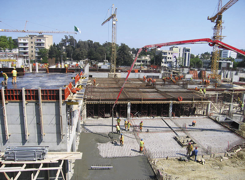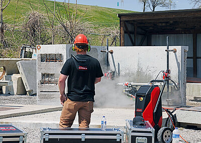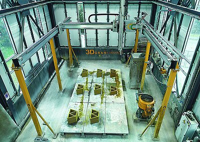 Gefertigt werden die meisten Teile, insbesondere die Sonderlösungen, in Steinach. Bei den Schweißspezialisten ist Präzision oberstes Gebot. Gerade die Sonderanfertigungen, die jede gewünschte Form aus Beton möglich machen, sind ein Bereich, der, so Barbara Vetter, in den vergangenen Jahren enorm an Bedeutung gewonnen hat. Aber auch die »Klassiker« wie die Raster/GE-Schalung sind nach wie vor sehr gefragt. »Die Rahmen der Großflächenschalung Logo.3 werden mit hochmoderner Roboter-Schweißtechnik zusammengefügt«, erklärt der verantwortliche Produktionsleiter Dipl.Wirtsch.-Ing. Ralf Neff.