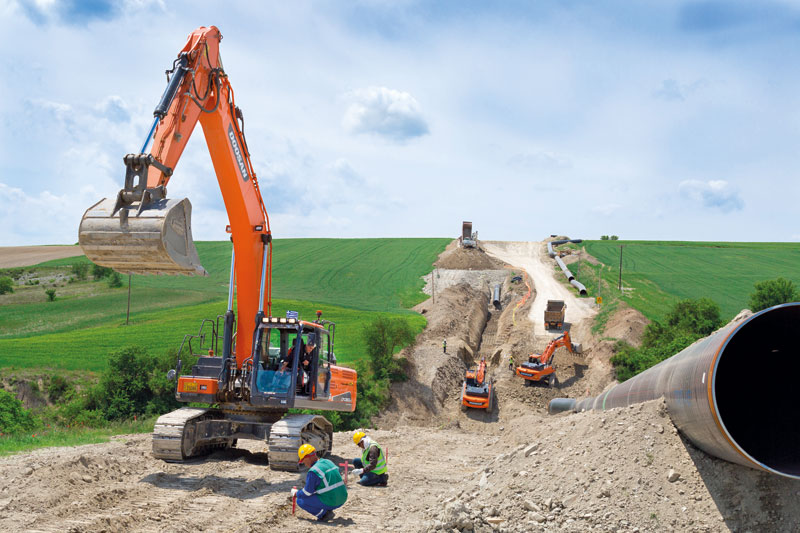 Im März 2016 erhielt ein von den Firmen Bonatti und J&P-Avax gegründetes Unternehmen den EPC (Engineering, Procurement, Construction)-Auftrag für einen Abschnitt des TAP-Projekts. Nach einer Wettbewerbsanalyse, an der acht Baggerhersteller teilgenommen hatten, wählte Bonatti-J&P Avax die Marke Doosan, um für diesen Auftrag die erforderliche Leistungsfähigkeit und Zuverlässigkeit bereitzustellen. Erworben wurden 52 neue Doosan-Kettenbagger für die Erdarbeiten und das Verlegen der Rohre mit einem Durchmesser von 1,2 m.