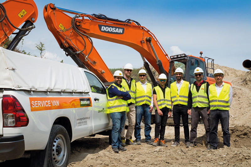 Der Vertrag für die 52 neuen Doosan-Bagger umfasst ein Service-Paket, das zwei Jahre Garantie mit der Möglichkeit der Verlängerung um ein weiteres Jahr sowie ein rund um die Uhr verfügbares dediziertes Service-Team beinhaltet. Die Wartung wird direkt vom griechischen Doosan-Händler Ergon Tzanidakis abgewickelt. »Für diesen Vertrag erwarben wir zwei vollständig ausgestattete Servicefahrzeuge und stellten vier neue Wartungstechniker ein, die gemeinsam mit mir ausschließlich für dieses Projekt zur Verfügung stehen«, so Dimitris Tzanidakis, Projektmanager des Händlerbetriebs Ergon Tzanidakis. »Die Ersatzteileverfügbarkeit durch die Anbindung an ein Ersatzteillager, das sich zentral am Projektstandort befindet, aus dem Hauptwarenlager von Ergon Tzanidakis in Athen sowie darüber hinaus dem Doosan-Warenlager in Leipzig, Deutschland, das Ersatzteile in unter 24 Stunden über Nacht liefern kann, stellt einen zusätzlichen Mehrwert dar.«