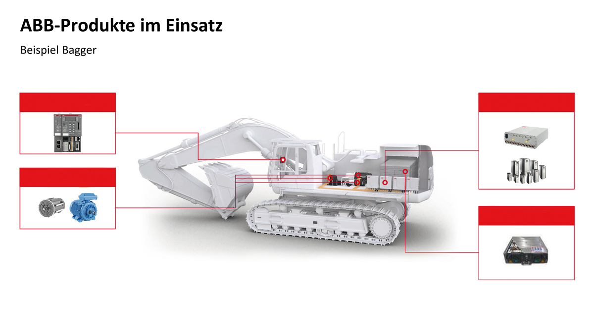 Um die Elektrifizierung von beispielsweise Baggern rentabel und praktikabel zu gestalten, bietet ABB Motion ein breites Portfolio von nachhaltigen Antriebslösungen.