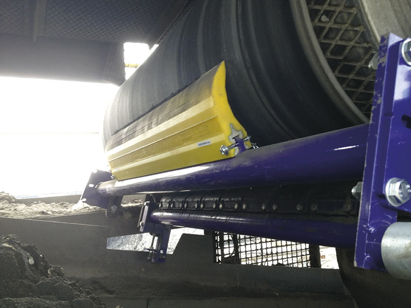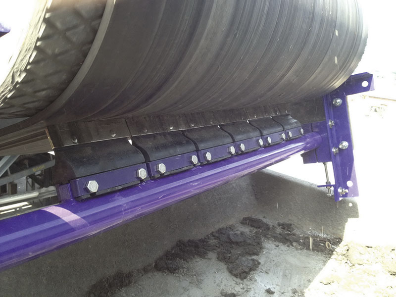 So unterschiedlich die Materialien sind, die Förderanlagen zum Beispiel vom Abbauort zum Werk oder zum Hafen befördern, so verschieden sind auch ihre Eigenschaften. Sie können feucht, klebrig, trocken, säurehaltig oder abrasiv sein. Je nach Umgebungstemperaturen – und diese sind besonders im Untertagebau sehr extrem – müssen die Transportbänder effizient gereinigt werden können. Diese Aufgabe übernehmen Kopfabstreifer, die an der Trommel nach dem Materialabwurf montiert sind, sowie Sekundärabstreifer. Diese befinden sich meist direkt hinter der Stelle, an der das Band die Kopftrommel verlässt.