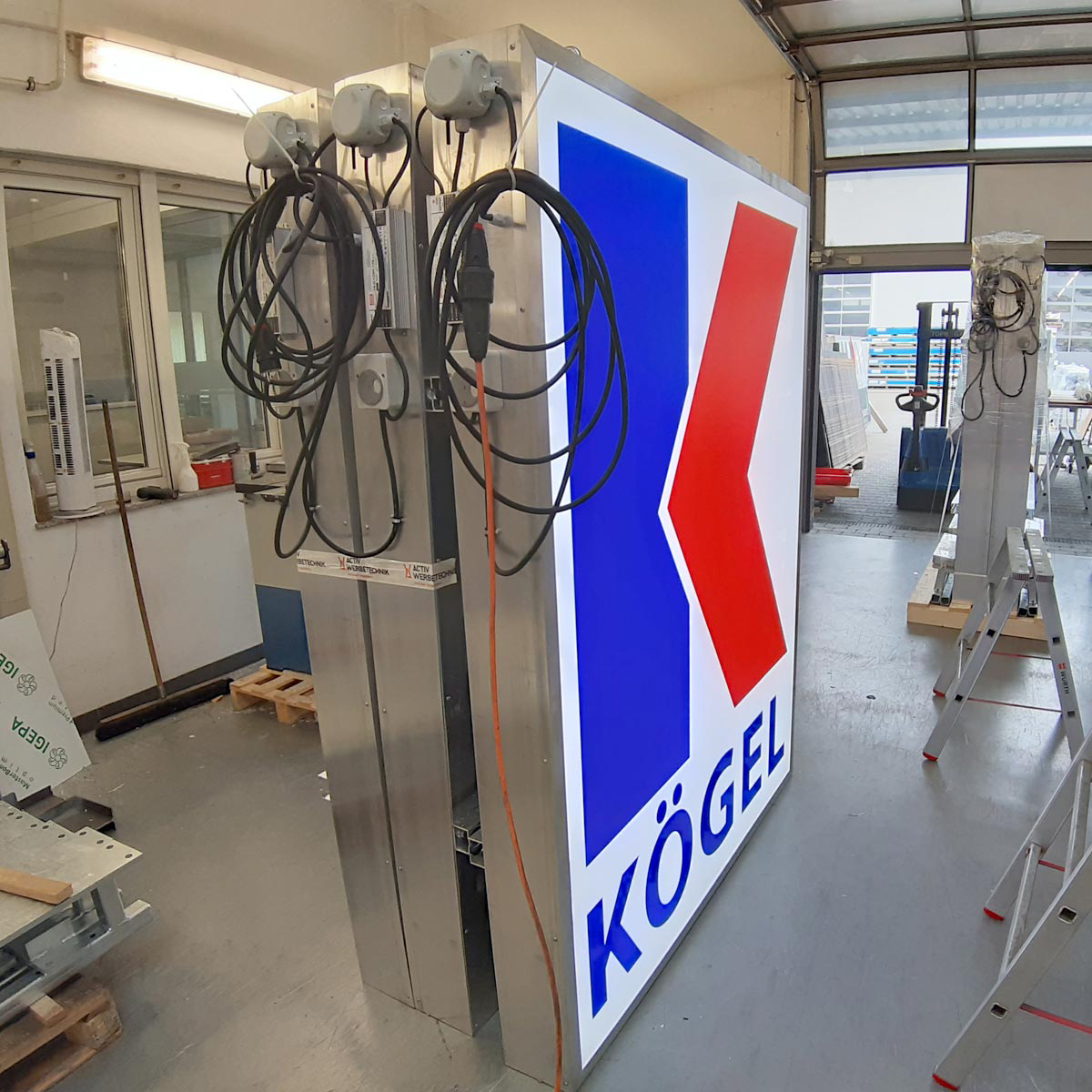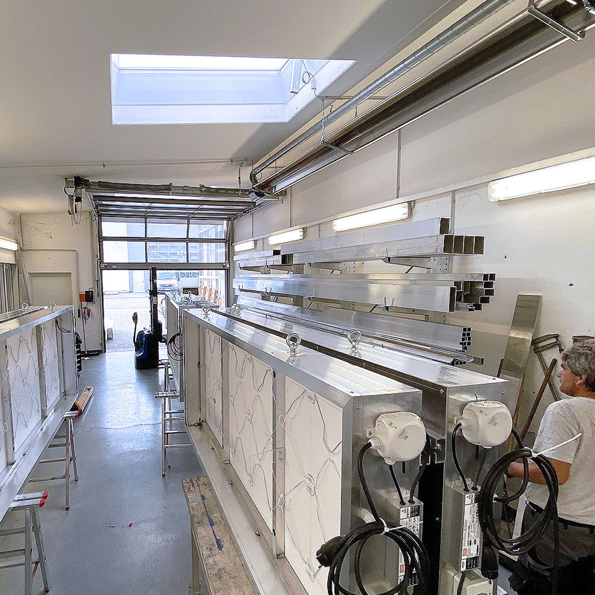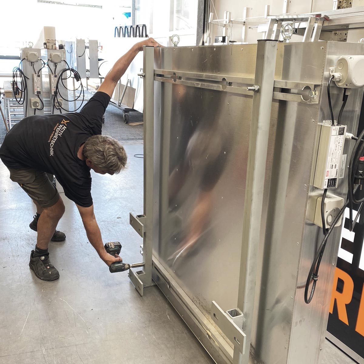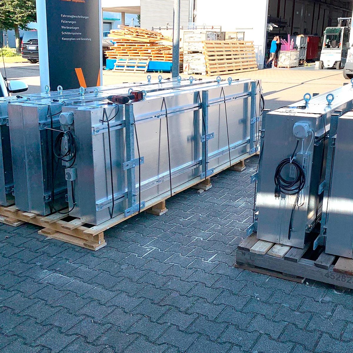 Die Kranwerbeschilder werden in der hauseigenen Schlosserei gefertigt. Alle Produktionsprozesse sind nach DIN 1090 zertifiziert