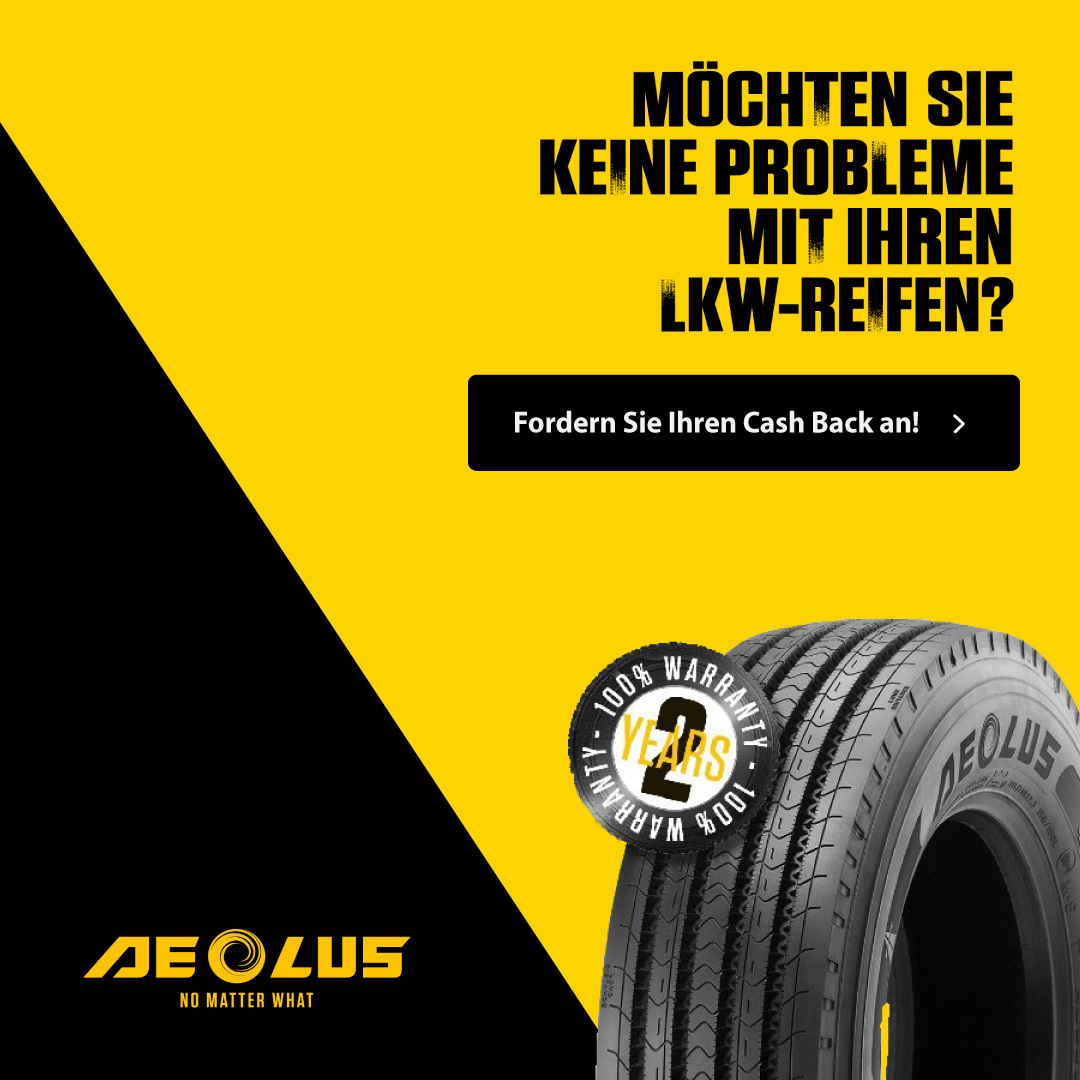 Jeroen Vos, Produktmanager Aeolus LKW: “Mit dieser Aktion wollen wir, gemeinsam mit dem Reifenfachhandel, neue Kunden überzeugen. Wir haben volles Vertrauen in die Nachricht, die wir mit der Aktion ankündigen, einschließlich der fünf Videos, die erstellt wurden, um die Argumente für die Wahl von Aeolus zu unterstützen. Natürlich bieten die Geld Zurück-Aktion und die zweijährige 100% Garantie unseren Kunden zusätzliche Sicherheit bei der Auswahl von Aeolus. Kaufen Sie ohne Risiko. Wir fordern sie durch diesen Schritt in unserem Marketing wirklich heraus. Speditionen, die es jetzt noch nicht wagen Reifen der NEO-Serie montieren zu lassen, werden wahrscheinlich nie wechseln.”