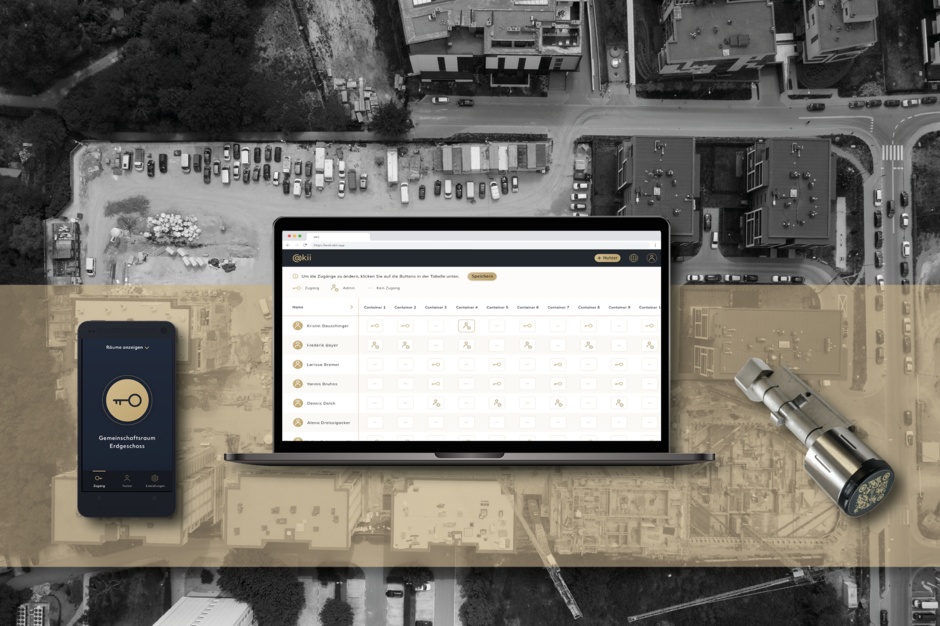 Das speziell für die Bauindustrie entwickelte digitale Schließsystem von akii ersetzt den Schlüssel auf der Baustelle und ermöglicht die dezentrale Zutrittsverwaltung. „Unsere App bietet den Verantwortlichen auf der Baustelle immer volle Übersicht darüber, wer Zugang zu einer Tür oder einem Baucontainer hat“, sagt Sandra May, Produktverantwortliche von akii. „Mit unserer Desktop Version bieten wir jetzt auch die ganzheitliche Auflistung aller Mitarbeitenden und ihrer Zugangsberechtigungen auf einen Blick und stellen zudem neue Bearbeitungsfunktionen bereit”, so May.