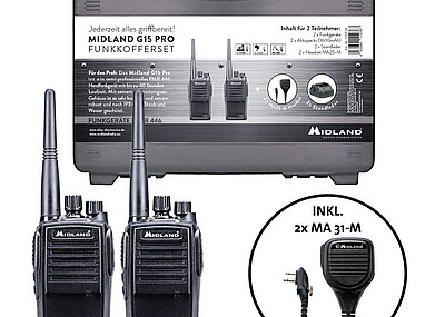 Die PMR 446-Handfunkgeräte von Albrecht und Midland empfehlen sich dank hoher Tonübertragungsqualität für den professionellen Einsatz auf der Baustelle, dem Betriebshof sowie in der Logistik und Lagerhaltung. Die Funkgeräte im praktischen Kofferset setzen auf ein stabiles und regenwasserfestes Gehäuse.