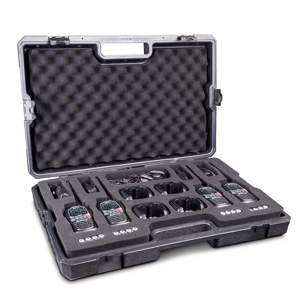 Das Midland G9 Pro wird mit Standlader, Akkupacks (1800 mAh), Headsets MA24-L und Gürtelclip im Hartschalenkoffer geliefert. Der UVP für das 2er-Kofferset liegt bei 249,90 Euro, das 4er-Kofferset bei 499 Euro.