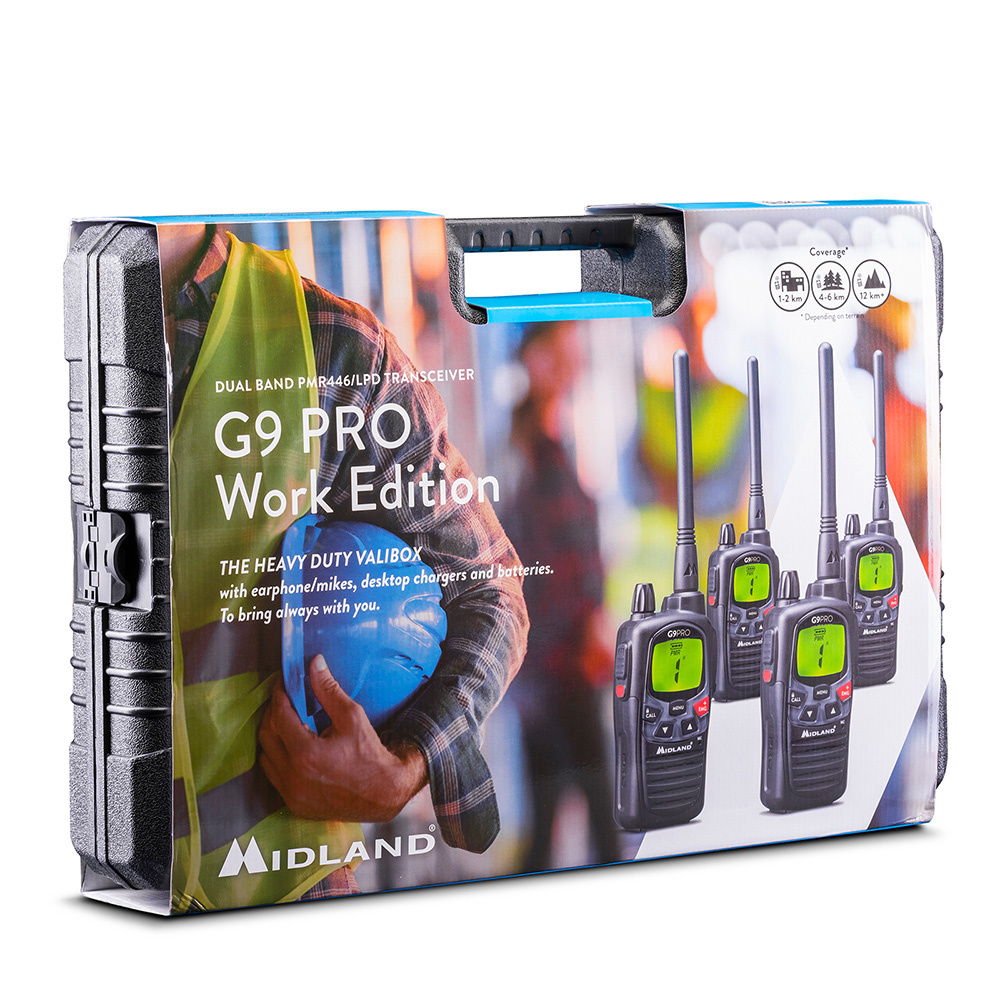 Das Midland G9 Pro ermöglicht den Funk über 16 PMR446- und 69 LPD-Kanäle. Mit der doppelten PTT-Taste kann der Nutzer die Sendeleistung für jeden Funkspruch selbst wählen und so die Betriebsdauer erheblich verlängern. Die Reichweite von bis zu 10 Kilometern lässt keine Wünsche offen. Zudem ist das G9 Pro nach IPX5-Norm wasserfest. Damit ist die optimale Funktion bei Arbeiten in der Landwirtschaft oder bei schlechten Wetterverhältnissen garantiert. Über eine Notruf-Taste („Emergency“) erreicht man in Reichweite befindliche Funkgeräte dieser Bauserie, selbst wenn diese auf andere Kanäle eingestellt sind. Zu den weiteren Ausstattungsmerkmalen gehören neben der in 3 Stufen einstellbaren VOX-Freisprechfunktion auch ein integrierter Vibrationsalarm (VIBRAcall) für diskrete Anrufsignalisierung. Informationen zu allen Koffer-Sets der Marken Albrecht und Midland sind erhältlich unter www.albrecht-midland.de.