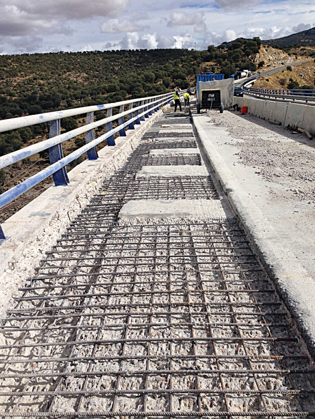 Beginnt beispielsweise die Stahlarmierung von Spannbetonbrücken zu rosten, so platzt der Überdeckungsbeton durch Volumenvergrößerung des entstandenen Eisenoxids ab und der Schaden wird sichtbar. Die beschädigten Stellen müssen freigelegt, entrostet, vor weiterer Korrosion geschützt und abschließend wieder verschlossen werden. Damit die Stahlarmierung oder Anschlussbereiche nicht beschädigt werden, kommt Höchstdruckwasserstrahlen zum Einsatz, da es erschütterungsfreies Arbeiten ermöglicht und somit weitere Beschädigungen verhindert. Zudem wird die Stahlarmierung freigelegt und entrostet, ohne sie zu beschädigen.