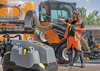 Bei seinen neuen Heißwasser-Hochdruckgeräten der »Mittel«- und »Superklasse« legt Kärcher den Fokus auf Ergonomie und Handhabung. Unter anderem soll Anwendern aus dem Bau- oder Transportwesen die Arbeit so leicht wie möglich gemacht und Rüstzeiten verkürzt werden. Auf der Bauma präsentiert der Reinigungsspezialist entsprechende Geräte für die Maschinen-, Fassaden- oder Bauabschlussreinigung, wie Hochdruckreiniger, Nass- / Trockensauger und Kehrmaschinen.