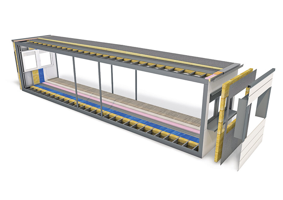 Dank der selbsttragenden Stahlkonstruktion der einzelnen Module entfallen tragende Wände im Innenraum. So kann dieser frei gestaltet werden – und das unabhängig voneinander in jedem Geschoss.