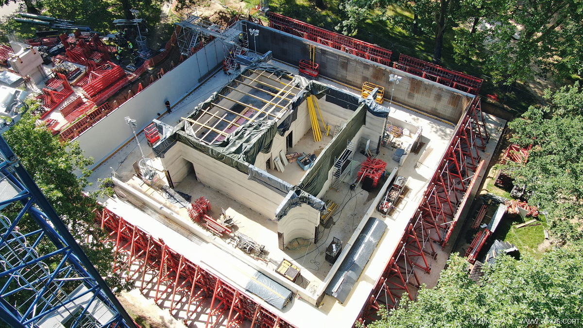 Der Bau des neuen Besucherzentrums stellte eine Reihe besonderer Anforderungen, insbesondere an die Ausführung der Betonwände, die weder Fugen noch Ankerlöcher aufweisen durften. Solche Anforderungen bei derart großen Flächen lassen sich durch aufgesetzte Vorsatzplatten auf einem Standard-Schalungssystem realisieren. Besonders die Alkus-Vollkunststoffplatten gelten als gut geeignet, um die genannten Anforderungen zu realisieren. Zusätzlich wurde der Beton in 30 cm hohe Ringe gegossen, um »Wellen« zu erzeugen, die rund um das Gebäude und die Fascia (Verglasungsfassade) fließen.