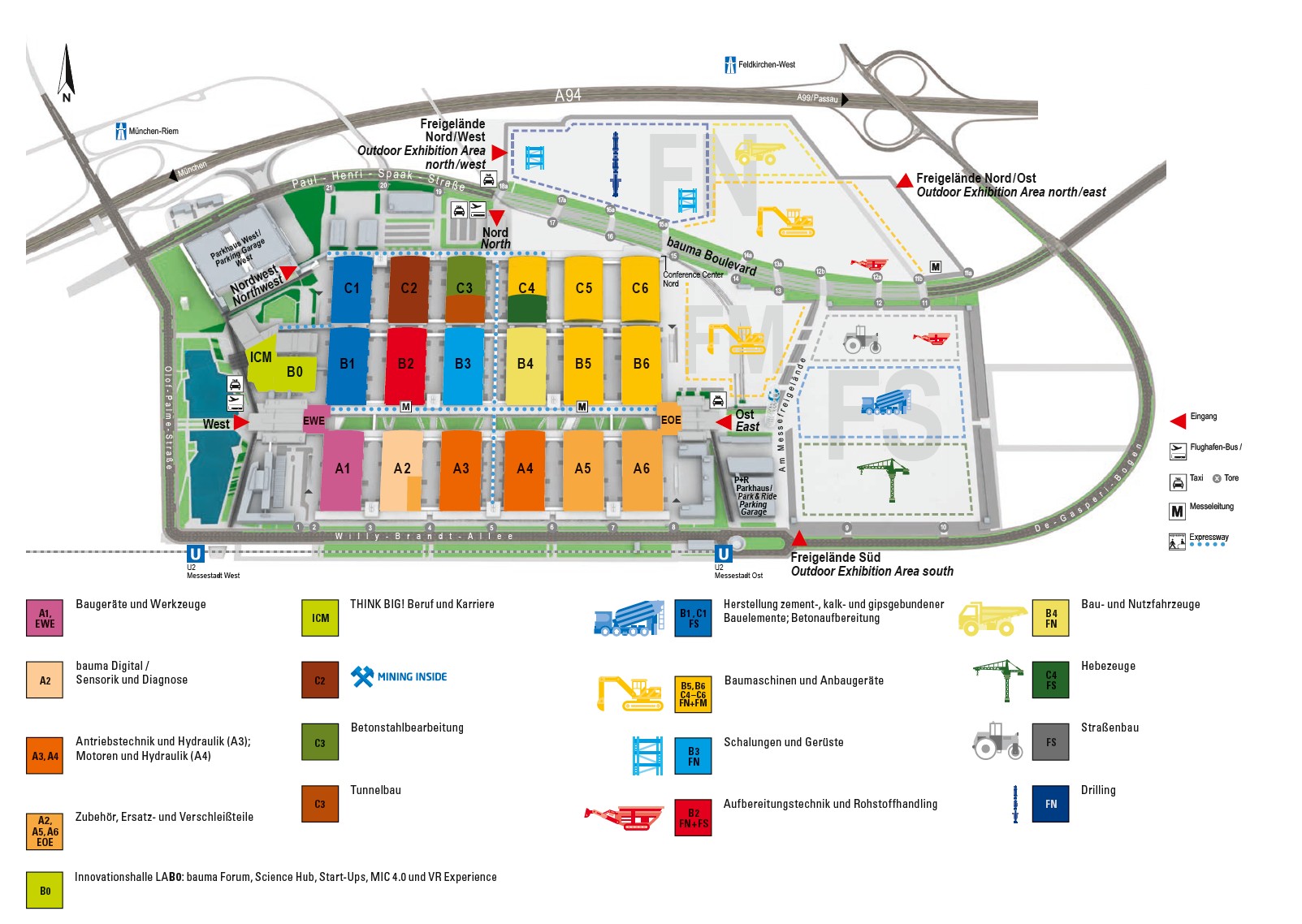 Integriert in die Innovationshalle LAB0 sind das »Bauma Forum« mit Thementagen und Beiträgen aus verschiedenen Bereichen, das Science Hub mit erlebbar gemachter Forschung, die Start-up-Area für Jungunternehmen und deren Innovationen sowie der Bereich Machines in Construction MiC 4.0: Dort stellt ein Verbund aus elf Mitgliedsunternehmen der gleichnamigen Arbeitsgemeinschaft vor, was in Zusammenarbeit mit Anwendern, Baumaschinen- und Anbaugeräteherstellern unter dem Namen MiC 4.0 BUS erarbeitet wurde.