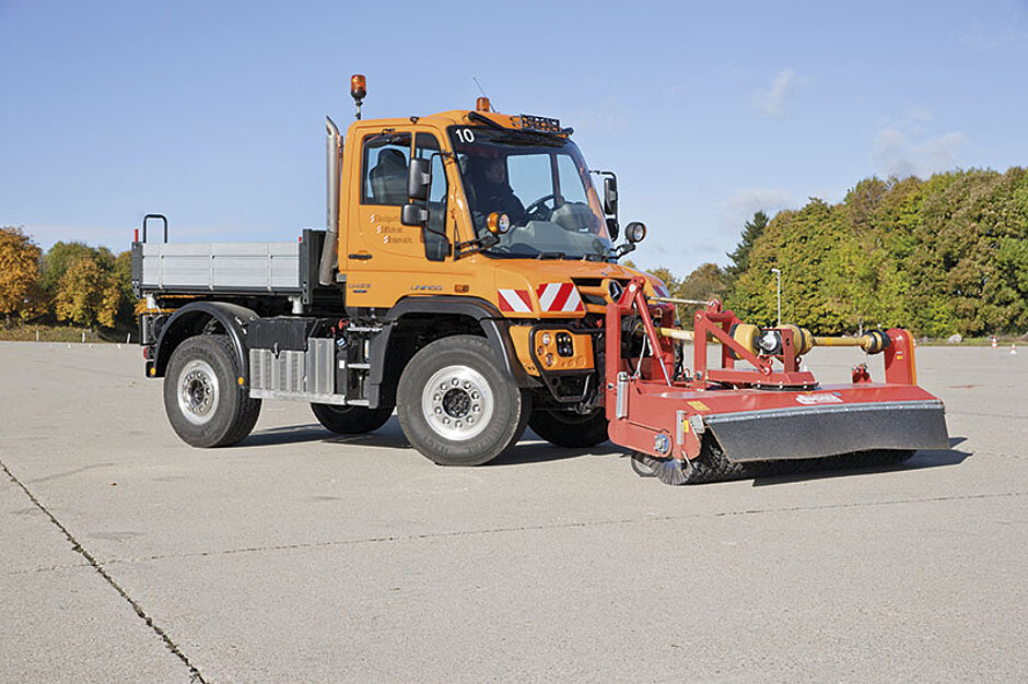 Ein Highlight verspricht der Unimog-Geräteträger mit dem stufenlosen Fahrantrieb EasyDrive auf der Straße (optional erhältlich). Die Synergie von Hydrostat und mechanischem Schaltgetriebe ermöglicht den fliegenden Wechsel während der Fahrt präzise auf den Einsatz abgestimmt. Bisher war beim Wechsel der Systeme ein kurzer Stopp nötig. Der neue komfortable Drive-Work-Modus erweist sich als große Hilfe im Arbeitseinsatz, ist beispielsweise im Mäheinsatz ein Abschnitt erledigt, wird einfach der Wechsel zum Schaltgetriebe aktiviert. Der neue Hydrostat im Unimog erlaubt jetzt Geschwindigkeiten bis zu 50 km/h – die hydrostatische Leistung wurde um 20 % erhöht. Während das stufenlose Fahren und Arbeiten insbesondere den Kupplungsverschleiß reduziert und die Arbeitsleistung erhöht, soll das Fahren mit dem Schaltgetriebe aufgrund optimaler Wirkungsgrade Kraftstoff einsparen helfen. Bei dem per EPS geschalteten Getriebe nimmt der Fahrer durch Betätigen der Kupplung den Wechsel vor, in Verbindung mit der optional erhältlichen automatisierten Schaltung wird der Wechsel vollautomatisch durchgeführt. Bedient wird das neue synergetische System bequem über Lenkstockschalter, Hydraulik-Joystick oder wahlweise das Fahrpedal.Neue Systeme für Arbeits- und Leistungshydraulik