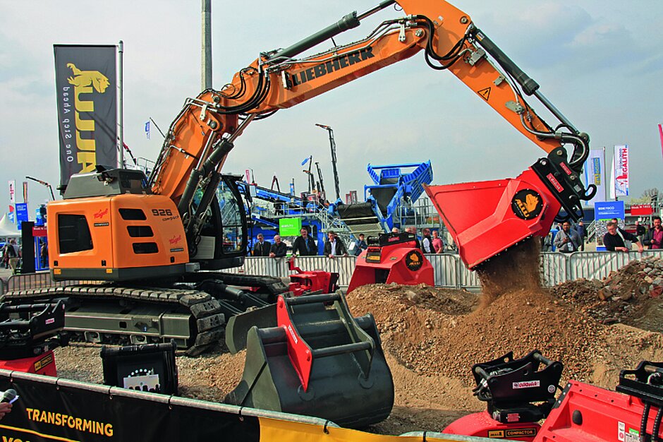 Getreu dem Motto »Nicht reden, sondern machen« hat Allu im Freigelände Nord den eigenen Bauma-Auftritt genutzt, um dem Publikum seine Anbaugeräte in regelmäßigen Demovorstellungen zu präsentieren. Das finnische Unternehmen hatte neben der gesamten Allu-Transformer-Palette, die von der DL-Serie über die D-Serie bis zur M-Serie reichte, auch den Processor 500 HD sowie die neue Compactor-Serie im Gepäck. Zu den zentralen Themen gehörte aber auch die weiterentwickelte Mobile-App, die mit neuen Funktionen mehr Sicherheit am Arbeitsplatz schaffen soll, gleichzeitig aber auch Neuerungen im Kundenservice mit sich bringt.