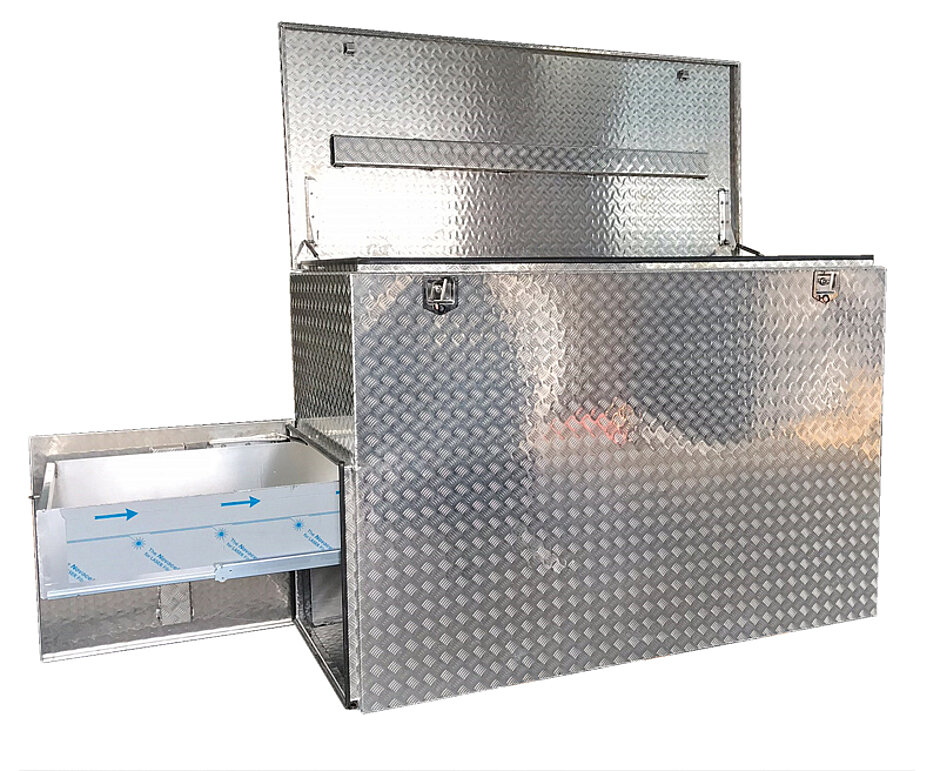 Die neue Serie XS 5000 verbindet drei Ladeebenen in einer Box. In der oberen, übersichtlichen Ladeebene bietet sich Speicherraum für leicht entnehmbares Material, Werkzeuge oder Kleinmaschinen.