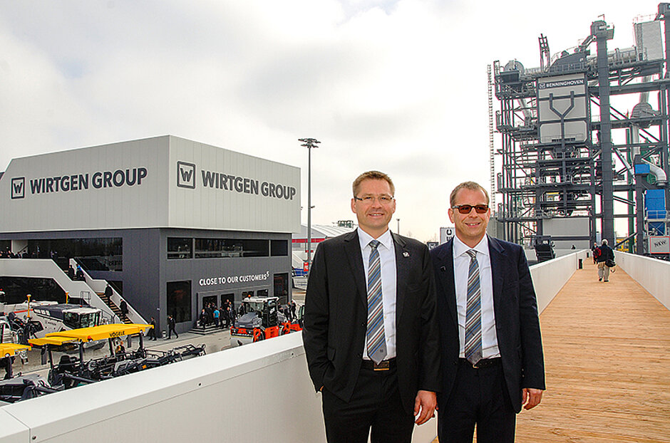 Maßstäbe werde man in Zukunft auch im Bereich Mineral Technologies setzen, so Stefan und Jürgen Wirtgen, in den man den Umsatz von derzeit rund 400 Mio. Euro bis zum Jahr 2020 um 50 % auf 600 Mio. Euro steigern wolle. Dafür werde man kräftig in die Marke Kleemann und Benninghoven investieren und die Mitarbeiterzahl in diesem Bereich von heute 1 200 auf 2 000 erhöhen. »Unsere Botschaft ist deshalb ganz deutlich«, so die Wirtgen-Brüder: »Wir wollen in den Mineral Technologies überproportional wachsen.«
