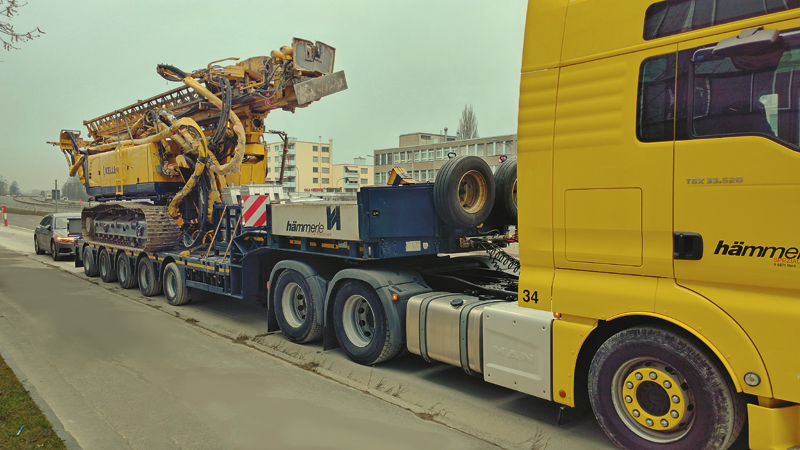 Für das Transportunternehmen Hämmerle gibt es bei den zu lösenden Transportaufgaben laut eigenen Aussagen kein »zu lang«, »zu hoch«, »zu breit« oder »zu schwer«. Als die Spezialisten eine Spezialbaumaschine mit mehr als 65 t Eigengewicht transportieren mussten, hielt der umfangreiche Fuhrpark hierfür auch Lösungsmöglichkeiten bereit. Eine Schnittstelle war aber bislang für solche Vorhaben noch mit einem Fragezeichen behaftet: Für die Beladung der Baumaschine auf den Tieflader mussten 85 cm Höhe überwunden werden.