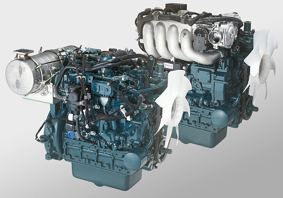 Kubota bietet als einer der führenden Hersteller für Industriemotoren einen Baukasten an, aus dem Kunden zwischen Diesel-, Benzin-, Treibgas- oder Erdgasmotoren wählen kann. Dabei bleibt je nach Leistungsklasse der sogenannte »Footprint« – die Aufhänge- bzw. Anschlusspunkte der verschiedenen Aggregate – immer gleich. So lassen sich ohne großen Aufwand je nach Kundenwunsch oder Markterfordernissen Maschinen gleicher Funktionalität mit Antrieben unterschiedlichster Kraftstoffarten ausrüsten.