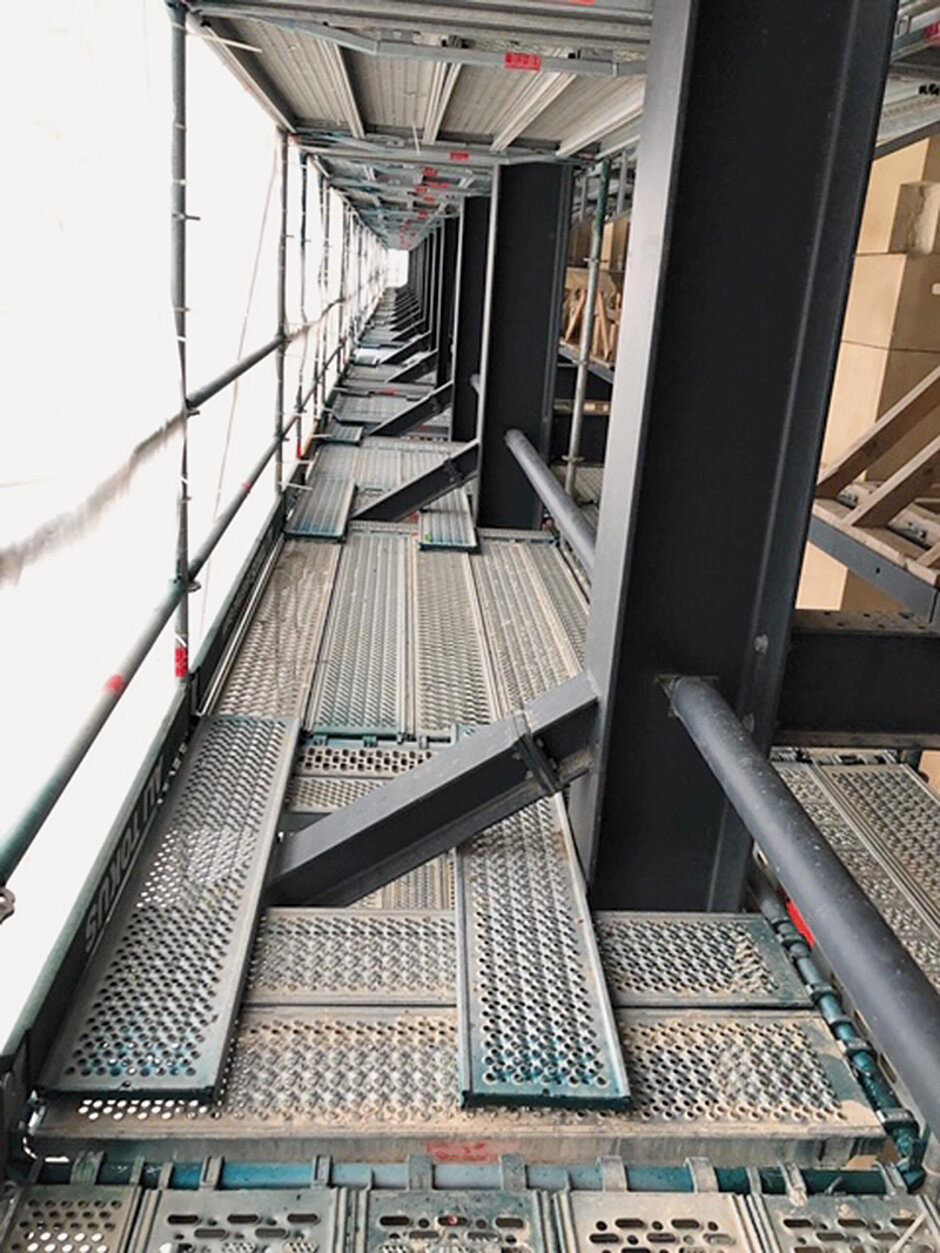 Mit einer Sicherungsklammer für Stahlböden sollen Gerüstbauer nicht nur Zeit und Kosten sparen, sondern auch unterschiedliche Stahlböden bzw. -typen miteinander verbinden können. Systemböden oder systemfreie Böden, Gerüstbeläge mit unterschiedlicher Bauhöhe oder mit unterschiedlichen Lochbildern können kombiniert werden. Dies erlaubt einen universellen Einsatz ohne die Nutzung unterschiedlicher Schraubengrößen bei zudem erhöhter Sicherheit.