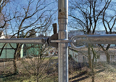 Auch im Bereich der Dächer griff man auf Produkte des Gerüstanbieters zurück: Die instabile Dachkonstruktion konnte mit Gitterträgern, Gitterträgerwandanschlüssen sowie Schwerlastkonsolen gestützt werden. Protect-Netze, vier Lasttürme mit teilweise Zwischenpodesten sowie drei Treppentürme ermöglichen den sicheren Zugang für die Sanierungsarbeiten am Turm, die bis in das Jahr 2023 andauern sollen. t