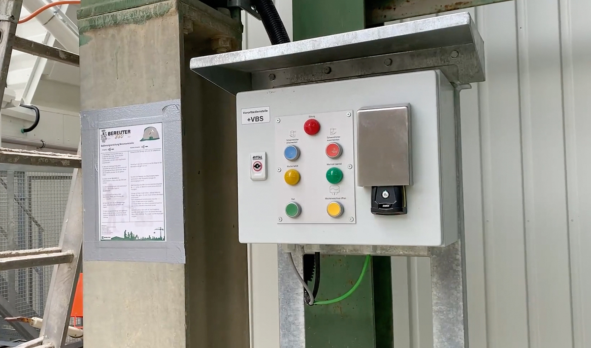 Zum Juli 2021 trat die Bereuter-Betontankstelle den Dienst an. Telefonisch, per E-Mail oder auch vor Ort nimmt das Team Bestellungen für Frischbeton zwischen 0,25 m³ bis 1 m³ pro Charge an. Ein Ampelsystem regelt den Zugang zur Betonausgabe. Steht das Licht auf Grün, darf der Fahrer direkt zur Beladung rangieren – Lichtschranken helfen bei der Positionierung, sodass der Beton korrekt verladen wird. An der Bedienstation wird die Bestellung über einen QR-Code auf dem Lieferschein verifiziert, der Mischprozess beginnt. In Minuten ist die Ausgabe erfolgt, der Beton unterwegs zur Baustelle.