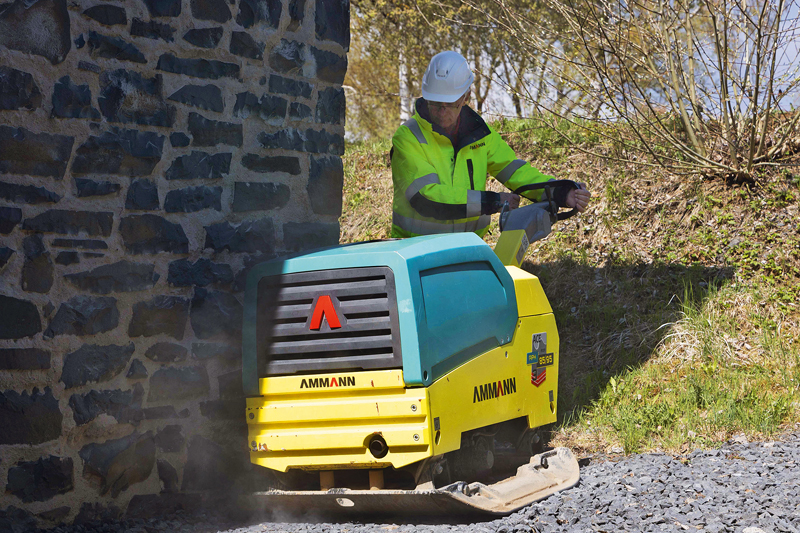 Darüber hinaus wird das Kippmoment stark minimiert. »Das sorgt für Laufruhe im Vorwärts- und Rückwärtslauf und die Großplatte kann durch die große Amplitude mehr Wuchtenergie in den Untergrund einleiten. Das Verdichtungsziel wird schneller erreicht und die Kosten werden reduziert«, erläutert Ammann-Experte Thilo Ohlraun. Selbst Hänge mit bis zu 36 % Steigung habe die neue Rüttelplatte mit Leichtigkeit genommen.