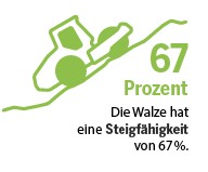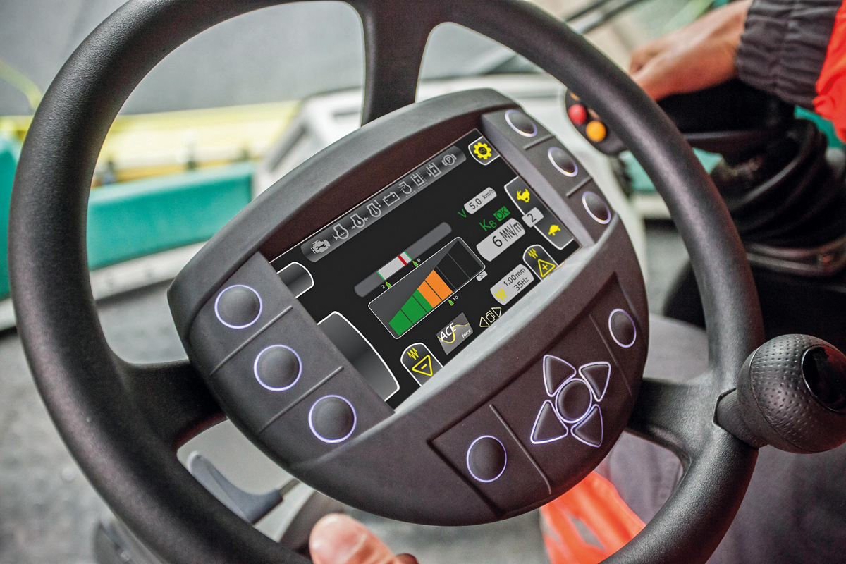 Mit der stufenlosen Regelung der Frequenz wird automatisch die Fliehkraft reduziert oder erhöht. Der Verdichtungsgrad wird dem Bediener am Display in MN (Mega-Newton) angezeigt. Damit wird nach Angaben des Herstellers in kürzester Zeit die geforderte Verdichtung erreicht und unnötige Walzübergänge werden vermieden. Das spart nicht nur Kraftstoff, Arbeitsaufwand und mindert den Maschinenverschleiß. Darüber hinaus sind teure Nacharbeiten auf einer bereits abgeschlossenen Baustelle damit Geschichte.