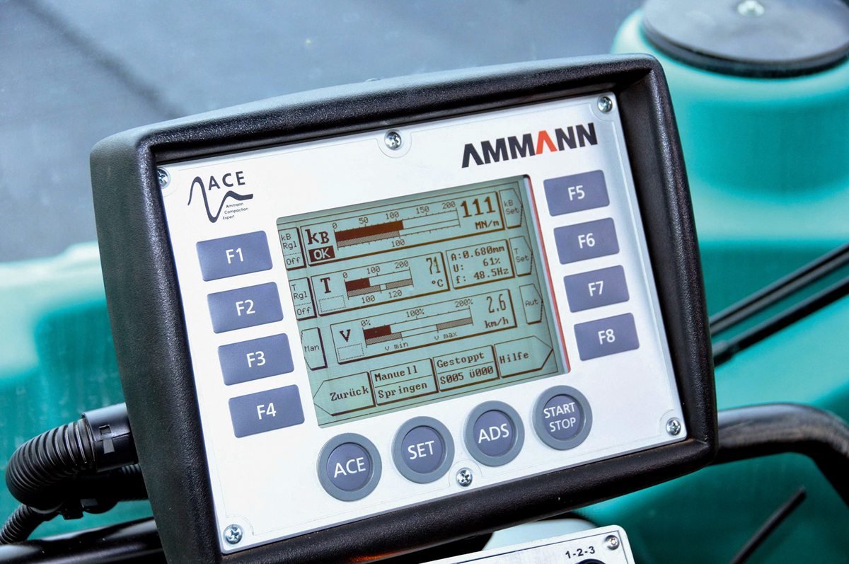 Wenn Straßenbauer ACEforce und ACEpro zusätzlich mit flächendeckender Verdichtungsdokumentation betreiben, soll ein »Non-Plus-Ultra« an Wirtschaftlichkeit erreicht sein. Mit dem System wird dem Fahrer auf einem Display flächendeckend der erreichte Verdichtungsgrad angezeigt. Darüber hinaus werden alle Werte gespeichert und der Bauleiter kann diese in Echtzeit einsehen. Somit ist laut Ammann garantiert, dass Fehler frühzeitig erkannt oder vermieden werden. Das soll die Qualität steigern und die Kosten für die Verdichtung reduzieren.