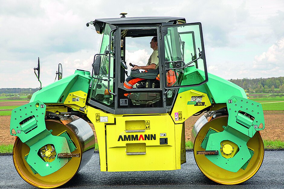 Volker Schneck ist seit 34 Jahren Walzenführer bei der Strabag. Als er seinen Beruf erlernte, verdichteten Straßenwalzen noch mit einfacheren technischen Hilfssystemen. Oszillation, automatische Verdichtungskontrolle, Maschinensteuerung – das war selbst Anfang der 1980er-Jahre noch Zukunftsmusik. Heute fährt Schneck hoch technisierte Walzen wie die APR95 von Ammann, die mit dem Ammann Compaction Expert System (ACEpro) ausgestattet ist. Diese Technologie umfasst ein automatisches Mess-, Kontroll- und Dokumentationssystem. Unterstützt durch GPS-Mapping können auch Daten über bereits verdichtete Flächen empfangen werden. Werte zur Tragfähigkeit des Materials, zur Anzahl der Überfahrten und zu Frequenz sowie Amplitude werden dem Maschinenführer auf dem Display direkt in der Kabine angezeigt. Dabei misst und analysiert ACEpro nicht nur, sondern passt Amplitude und Frequenz auch automatisch an.
