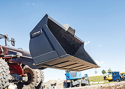 Am Rädlinger-Stand B 308 können sich die Besucher bei Vorführungen auch live ein Bild von der Schwenkfunktion um beidseitig 90° machen. Echte Hingucker dürften aber auch die beiden Großanbaugeräte am Stand sein. Die Ladeschaufel mit 3,1 m Schnittbreite und 4 500 l Füllvolumen und den Felslöffel mit 1,6 m Schnittbreite und 2 500 l Füllvolumen verbindet ihre Konzeption für bestes Füllverhalten.