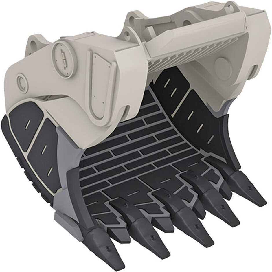 Durch ihre Form lassen sich größtmögliche Materialmengen mit reduziertem Haftwiderstand aufnehmen und entleeren. Scharfe Zähne und eine optimale Kraftübertragung vom Kasten zum Messer durch schwere und tiefe Seitenschneiden sollen dafür sorgen, dass die Löffel selbst in härteste Bodenschichten leicht eindringen. Darüber hinaus verfügt der Reißlöffel über einen extrem weit nach vorne gezogenen Mittelzahn, der ähnlich wie ein Reißzahn fungiert. Einen reibungslosen Aushub stellt der sich nach hinten verjüngende Löffelkorpus durch einen optimalen Freischnitt sicher.