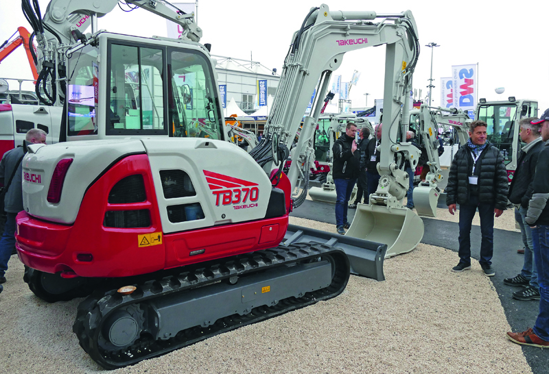Die 3,5-t-Neuheit TB 235-2 von Takeuchi ist mit einem 18,2 kW (24,8 PS) starken Motor ausgerüstet und wurde besonders auf den Gebieten des Bedienerkomforts und der Hydraulik weiterentwickelt. So zeigt sich die Kabine spürbar geräumiger als beim Vorgängermodell. Nun soll es auch möglich werden, mit dicker Winterkleidung problemlos in der Kabine zu arbeiten. Die Bedienung wurde durch ein kontrastierendes LCD-Display erleichtert, das Arbeitsumfeld leuchten jetzt LED-Scheinwerfer aus.