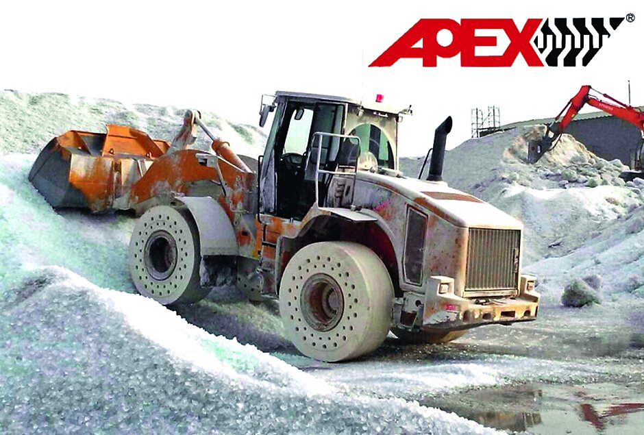 Zur Bauma kommt das Unternehmen aus Taiwan als Neuheit mit einem weißen Non-Marking-Vollgummireifen für Radlader, der in Glaswerken, Lebensmittelfabriken oder auch überdachten Stadien eingesetzt werden kann. »Die Reifen sind aus natürlichem Gummi mit hoher Stabilität und besitzen eine lange Nutzungsdauer – weitaus länger als gewöhnliche Luftreifen«, wie Klemm betont. Vollgummireifen verfügen laut Apexway über eine zwei- bis dreimal längere Nutzungsdauer als Luftreifen, weil Luftentweichungen, Profilschäden sowie Reifenausbrüche durch Einstiche oder Schnitte vermieden werden. Apexway bietet unterschiedliche Mischungen für Einzelanwendungen an, um somit irreguläre Abnutzungen unter speziellen Einsatzbedingungen vermeiden zu können.