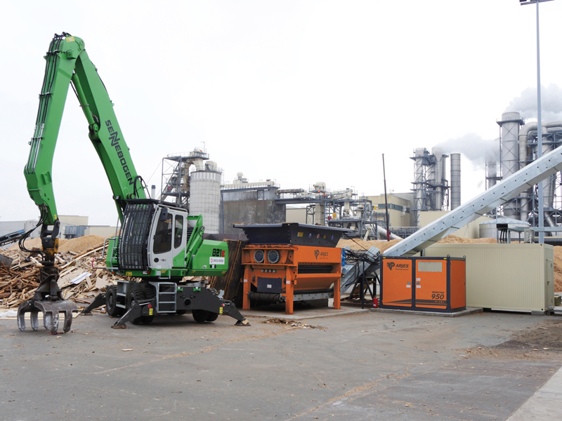 Auch vor der Aufbereitung von Grünschnitt, Stamm- und Altholz sowie schweren Industrieabfällen und Altreifen soll der Impaktor 950 nicht zurückschrecken. Wie alle mobilen Arjes-Zerkleinerer, wird auch dieser serienmäßig mit einem Kettenlaufwerk, dem Schnellwechselsystem für Werkzeugwellen, einem Querband zur effektiven FE-Abscheidung, Wasserbedüsung und einer Plug-and-Play-Steuerung ausgestattet.