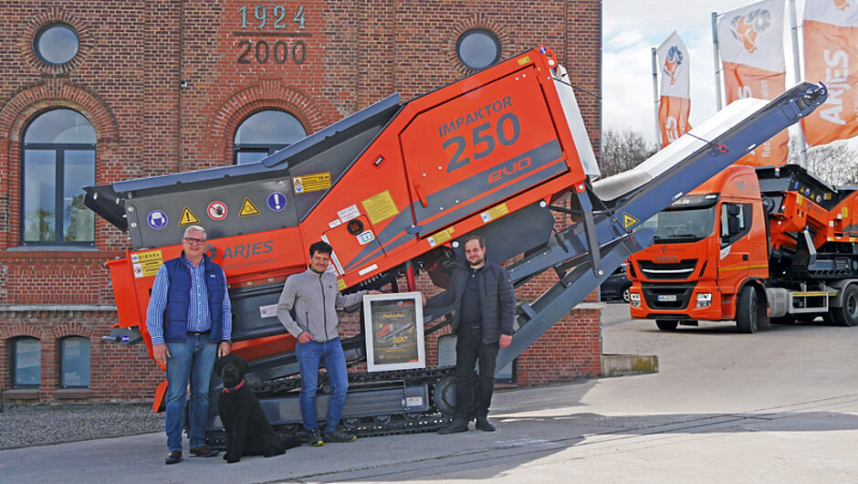 Der Eigentümer der Jubiläumsanlage hat sein Unternehmen im Jahr 2005 in Dingelstädt bei Leinefelde (Thüringen) gegründet – mit einem acht Jahre alten Multicar, einem 13 Jahre alten Abroll-Container-Fahrzeug sowie einem kleinen Bestand an Kies, Schotter und Sand. Heute beschäftigt das Unternehmen 30 Angestellte und zählt eine breite Palette an Containern, Maschinen und Fahrzeugen zum Inventar. Neben Radladern, Baggern, Container- und Kipperfahrzeugen besitzt Wedekind eine Siebanlage sowie einen Holzschredder, den er bereits im Jahr 2008 von Arjes bezogen hatte und von dem er sich bis heute überzeugt zeigt.