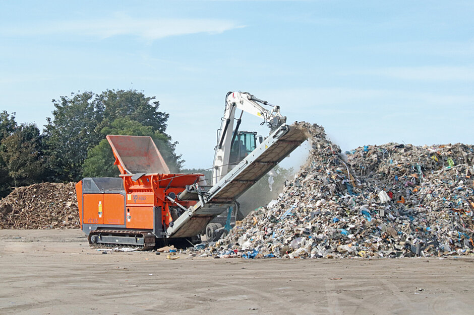 Nach einem Gespräch mit Arjes-Geschäftsführer Thomas Hayn konnte kurzfristig eine Mietvereinbarung für den VZ 850 DK getroffen werden. Ausgestattet mit einem 565 kW starken Dieselmotor von Volvo Penta, einer Paddelwellenkonfiguration mit asynchronem Wellenlauf, zwei Kipptrichtern für eine bessere Materialzuführung, einem verlängerten Austragsband inklusive Überbandmagnet, einem Kettenfahrwerk und einer Funkfernsteuerung wurde der Zweiwellenzerkleinerer auf dem Recycling-Hof in Bitburg eingesetzt.