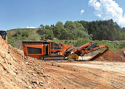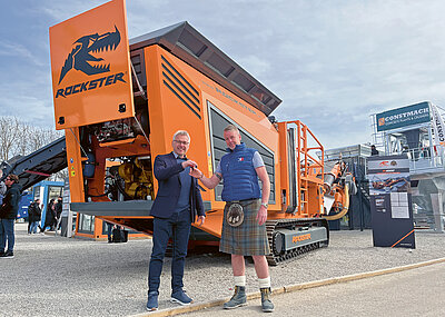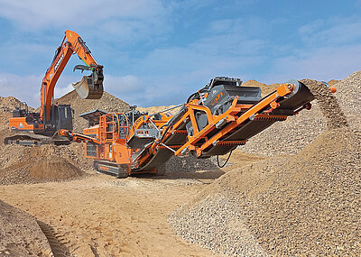 Der raupenmobile Prallbrecher »Rockster R1000« hingegen kombiniert laut Hersteller »hohe Qualität, saubere Endkornprodukte und Vielseitigkeit in der Aufbereitung von Bauschutt, Asphalt, Beton und Naturstein«. Die Maschine ist mit einem leistungsstarken Kreisschwingsieb, einem doppelfunktionalen Rückführ- oder Haldenband sowie einem hydraulisch höhenverstellbaren Magnetabscheider ausgestattet. Ein eingebauter Windsichter trennt leichte Materialien wie Papier, Holz oder Kunststoff ab, wodurch ein sauberes und hochwertiges kubisches Endprodukt entsteht. Der 340-PS-Cat-Stage-V-9.3-Motor und das hydrostatische Antriebssystem sorgen für hohe und konstante Leistung. Besonders benutzerfreundlich ist die Zentralmaschinensteuerung mit automatischer Überwachung und einem intuitiven Farbdisplay, das Schnellstartfunktionen und Voreinstellungen bietet, wie der Hersteller erklärt. Darüber hinaus ermögliche die großzügige Gestaltung der Motorraumzugänge eine einfache und schnelle Wartung.