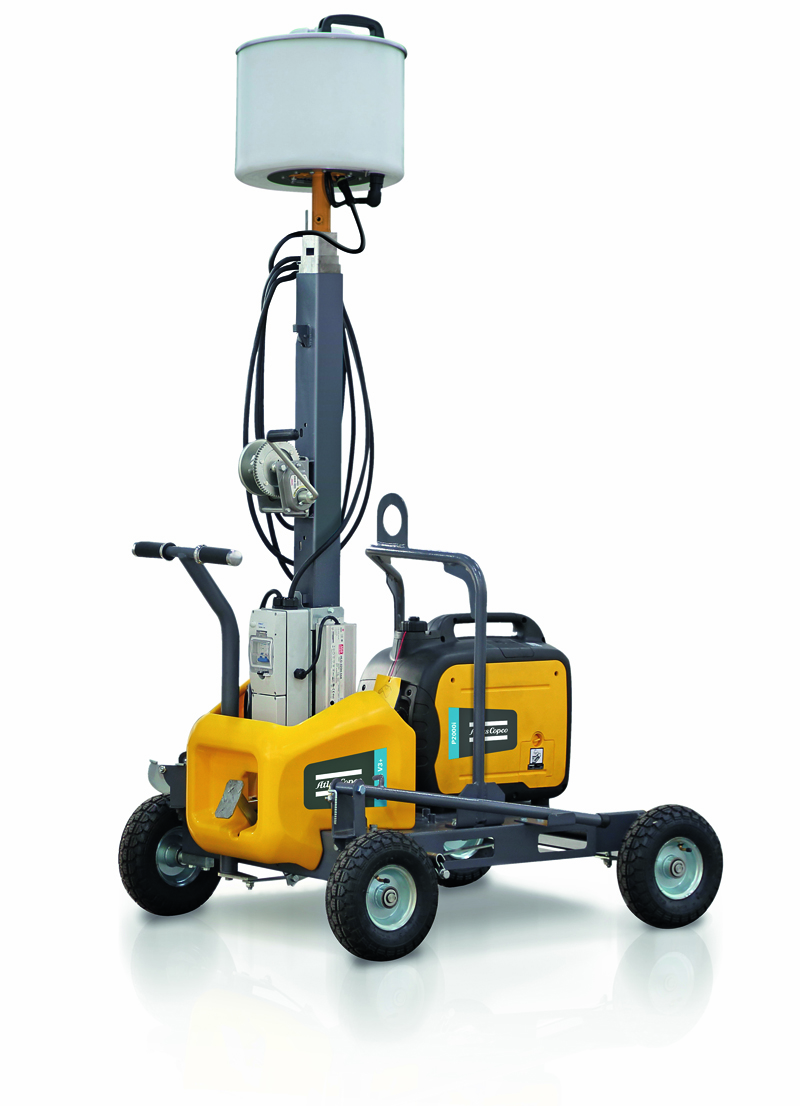 Der HiLight V2+ ist für den Einsatz bei Straßenarbeiten und auf Baustellen konzipiert. Das Modell verfügt über einen hoch belastbaren Stahlrahmen und wird von Polyethylen-Stoßfängern geschützt, die Atlas Copcos HartHat-Haube in nichts nachstehen sollen. Der Lichtmast V2+ besitzt eine LED-Lichtquelle mit 320 W und deckt dank spezieller Glasoptik mit Richtcharakteristik eine Fläche von 2 000 m² ab. Der senkrechte Mast wird manuell ausgefahren, erreicht bis zu 5,5 m Betriebshöhe und lässt sich um 9° drehen.