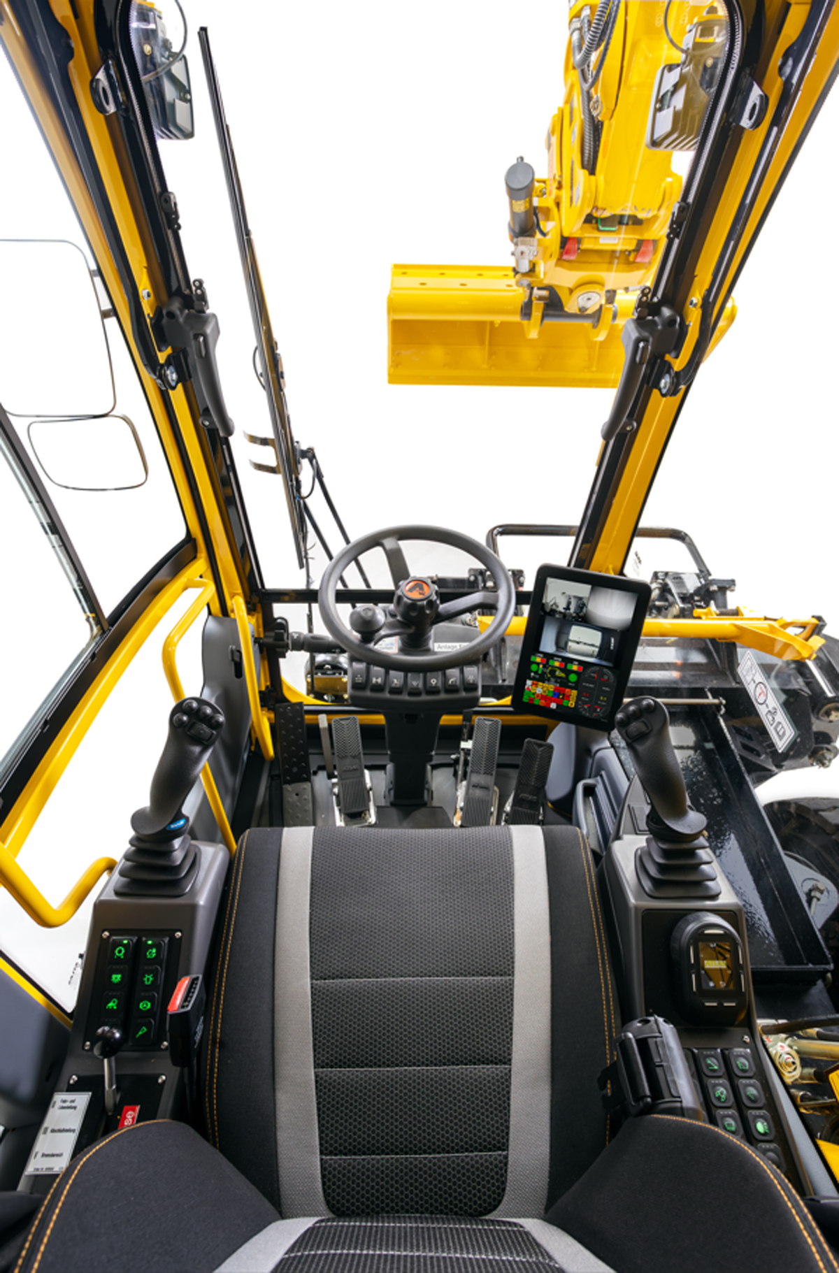 Als besondere Sicherheitsmerkmale bietet der 235RR eine serienmäßige Rückfahrkamera, integrierte Seitenkamera, LED-Fahrlicht vorne sowie hinten und eine 270-Grad-Kamera für optimale Sicht. Die Kabine gewährleistet durch eine breite Tür, rutschfeste Stufen und ergonomisch gestaltete Bedienkonsole einen hohen Komfort und Sicherheit für den Fahrer. Der Fahrersitz ist individuell einstellbar und sorgt für hohen Sitzkomfort, unterstützt durch Klimatisierung und eine intuitive Bedienoberfläche. Die Wartungsfreundlichkeit des 235RR stellt ein weiteres Plus dar. Einfach zugängliche Servicepunkte reduzieren Stillstandzeiten und Wartungskosten, und das optionale Telemetrie-System ermöglicht die Echtzeitüberwachung der Maschinendaten. Der Zweiwegebagger verfügt zudem über eine leistungsstarke Waggonbremse, die das Ziehen schwerer Lasten bis zu 120 t sicher ermöglicht.