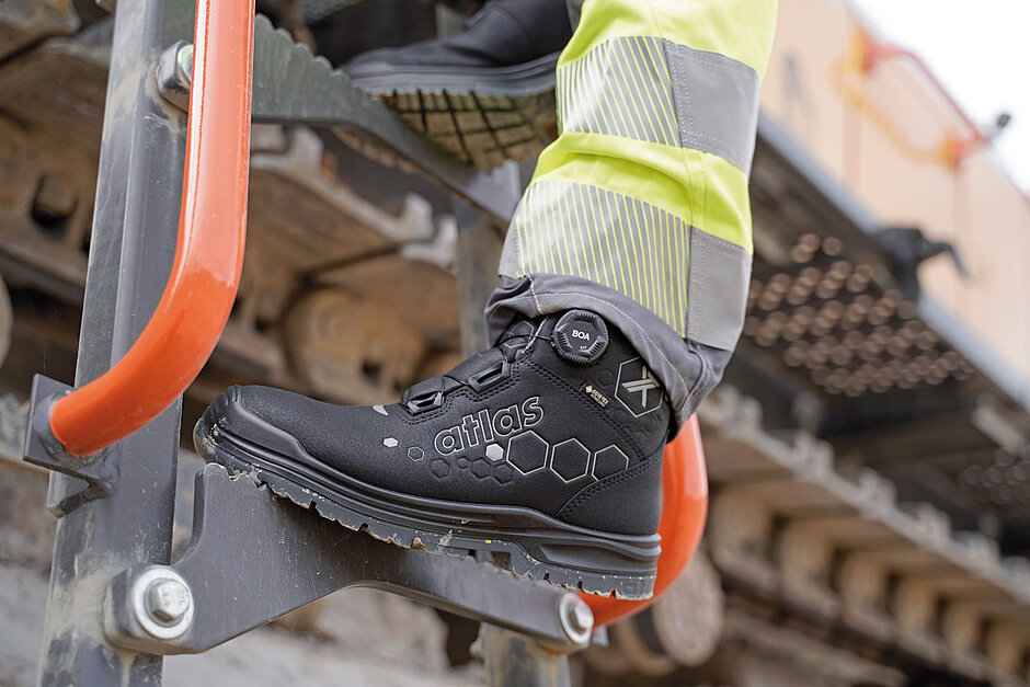 Mittels »Boa«-System lässt sich der Schuh auch mit Handschuhen einfach mit nur einem Dreh präzise und individuell schließen. Zeitaufwendiges Schnüren oder Entknoten entfällt, was im Arbeitsalltag wertvolle Zeit spart. Darüber hinaus wurde der »XT 550 Boa GTX« mit dem »Extraguard« Obermaterial von Gore-Tex ausgestattet: Dieses ist im trockenen Zustand 40 Prozent leichter als herkömmliches Leder und schützt gleichzeitig zuverlässig vor mechanischen Belastungen, Hitze, Nässe sowie Alltagschemikalien. Durch die Konstruktionsinnenlage bleibt das Material auch bei nassen Bedingungen leicht.