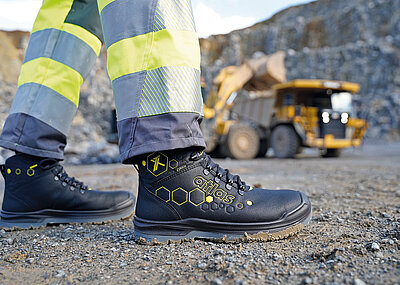 Mitarbeiter, die Straßen asphaltieren, müssen häufig viele Kilometer am Tag auf einem heißen Untergrund zurücklegen und stellen somit ganz besondere Anforderungen an ihr Schuhwerk. Neben einer rutschfesten Laufsohle und einer guten Passform, steht auch der Tragekomfort im Blickfeld, wird doch ein Sicherheitsschuh täglich bis zu 14 Stunden getragen. Hierbei ist besonders wichtig, dass der Schuh atmungsaktiv ist und trotzdem allen Arbeitsbedingungen Stand hält. Besonders im Straßenbau kommt es bei Sicherheitsschuhen auf eine sehr gute Thermoisolierung und auf eine profillose Laufsohle an, die unerwünschte Abdrücke auf der Asphaltdecke vermeidet.