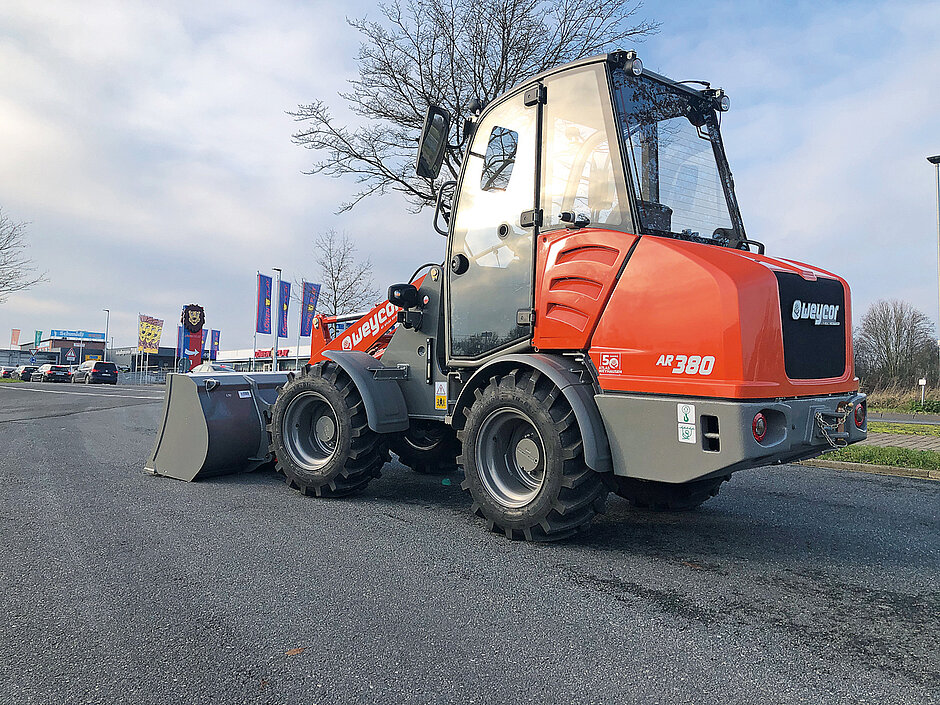 Beim neuen 3 500 kg schweren Weycor AR 380 sollen äußerlich ein neues Design der Motorhaube, eine ebenso neugestaltete Fahrerkabine, neue Kotflügel, ein neuer Aufstieg und die im Gegengewicht positionierten Heckleuchten auffallen. Gänzlich neu ist laut Hersteller die seitlich kippbare Fahrerkabine, die den Servicezugang erleichtert. Ausgestattet ist die neue Kabine zudem mit einer neuen, leistungsfähigeren Heizung, optional ist eine Klimaanlage erhältlich. Der neue Antriebsstrang wird mit der Kraft des neuen 37 kW starken Kubota-Dieselmotors angetrieben. Die standardmäßige hydraulische Leistung beträgt 40 l bei 280 bar. Eine High-Flow-Version mit 75 l und 210 bar ist optional möglich.