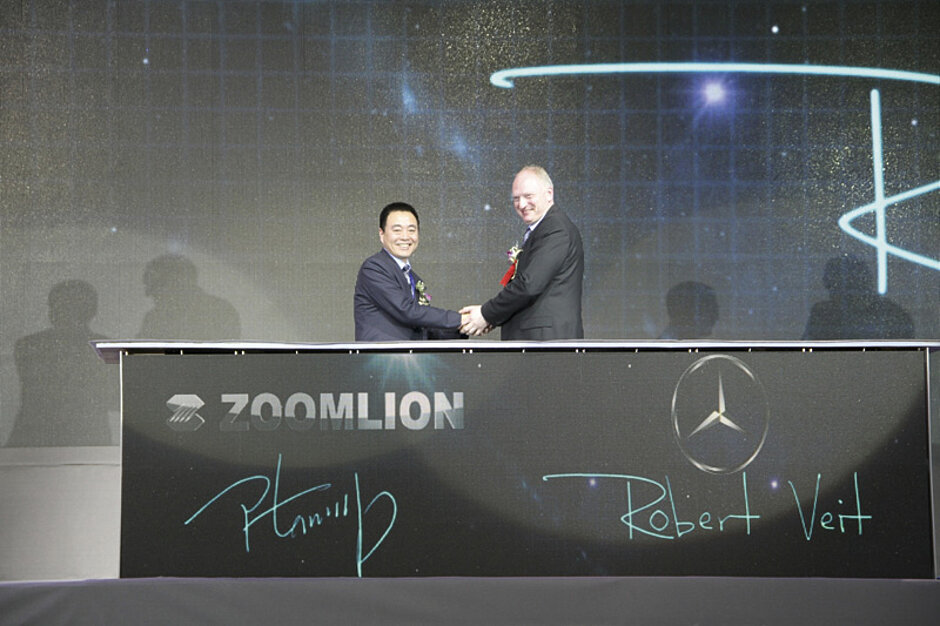 Daimler konnte im Jahr 2011 knapp 5 800 Lkw in China verkaufen und ist damit Marktführer unter den europäischen Wettbewerbern im Import-Segment in China. Vor allem der überproportional wachsende chinesische Bausektor verlangt nach Premium-Lkw, die für die besonderen Anwendungen zugeschnitten sind. Hubertus Troska, Leiter Mercedes-Benz Lkw und weltweit verantwortlich für Mercedes-Benz Lkw, unterstreicht die Bedeutung der Vertragsunterzeichnung: »Wir freuen uns sehr darüber, dass unser chinesischer Geschäftspartner für seine anspruchsvollen Anwendungen im Baustellensektor auf Lkw von Mercedes-Benz setzt.«