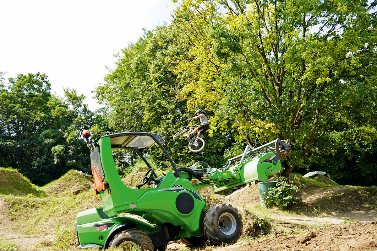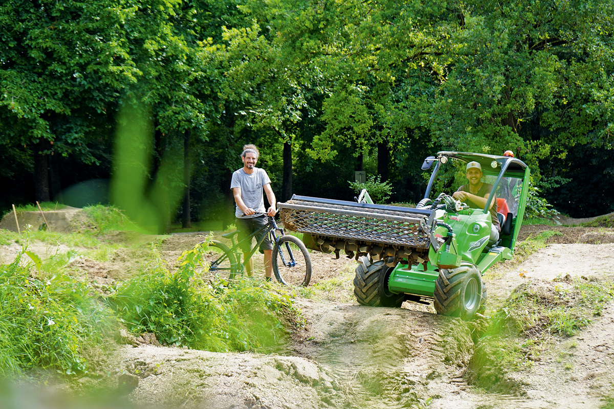 Zudem sei der »650i« äußerst wendig und lasse sich gut manövrieren. Mit der zuschaltbaren Traktionskontrolle kann er ohne Traktionsprobleme über die sogenannten »Push-Hügel« fahren. »Um den Boden zu bearbeiten, haben wir den ›Avant‹ mit einer Umkehrfräse mit 1 350 mm Arbeitsbreite ausgestattet«, geht Kurz ins Detail. Christopher Steinberger zeigte sich von der Eignung der Maschine begeistert. »Der ›Avant‹ mit Umkehrfräse ist genau das Richtige, um die verdichteten Böden der Hügel aufzulockern. Anschließend werden sie neu verdichtet und in die Nutzbarkeit zurückgeführt. Die Arbeit lässt sich mit der Maschine sehr produktiv erledigen«, resümiert Steinberger und spricht von einer erheblichen Arbeitserleichterung. Bislang musste er die Hügel in den Dirtparks oftmals in Handarbeit aufbereiten, weil die Böden für herkömmliche Fräser zu hart waren – eine mühsame, kräftezehrende und zeitaufwendige Aufgabe, die der »Avant« deutlich vereinfacht.s
