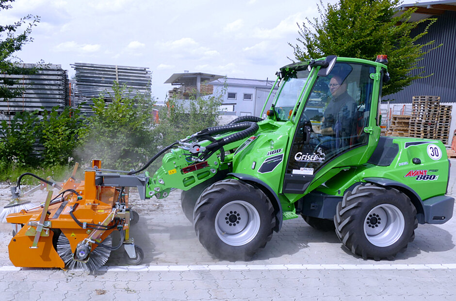 Ihn begeistert auch die hohe Durchzugskraft bei der Arbeit mit dem Kehrbesen oder dem Mulcher. Die zwei Pumpen der Zusatzhydraulik liefern bis zu 80 Liter pro Minute Durchsatz. Ein anderes Beispiel für die große Kraft, die zur Verfügung steht, sind die 2.200 kg Ausbruchkraft für die Arbeit mit einem Hydraulikhammer. Welche Aufgabe man auch immer vor sich hat, der Avant 860 i kann sie - mit dem Einsatz von über 190 verschiedenen Anbaugeräten - leisten. In Summe ist er letztlich eine Maschine für außerordentlich vielfältige und wirtschaftliche Einsätze.