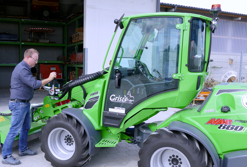 Mit dem Avant 860i hat die Firma die passende Maschine gefunden. Der 2,5 t schwere Multifunktionslader ist mit einem Kohler-Motor mit 42KW/ 57 PS und konform mit EU Stufe V ausgerüstet. Er hat einen Dieselpartikelfilter mit automatischer Regeneration eingebaut. Dieser Motor liefert die Kraft, um 1.900 kg heben und 30 km/h schnell fahren zu können. Die maximale Hubhöhe liegt bei 3,5 Meter. „Wie gesagt, wir haben für den Avant viele Aufgaben. Dementsprechend müssen wir öfter das Anbaugerät wechseln. Da zeigt sich, dass die Multifunktionskupplung eine wirkliche Hilfe ist. Das Trennen und Verbinden der Hydraulikventile geht mit einer kleinen Hebelbewegung problemlos und schnell vonstatten. Eine wunderbare Einrichtung“, so Größlinger. Sie ist zudem so gestaltet, dass es keine Verwechslung der jeweiligen Hydraulikzuleitungen geben kann und ist damit eine praxisnahe Konstruktion.